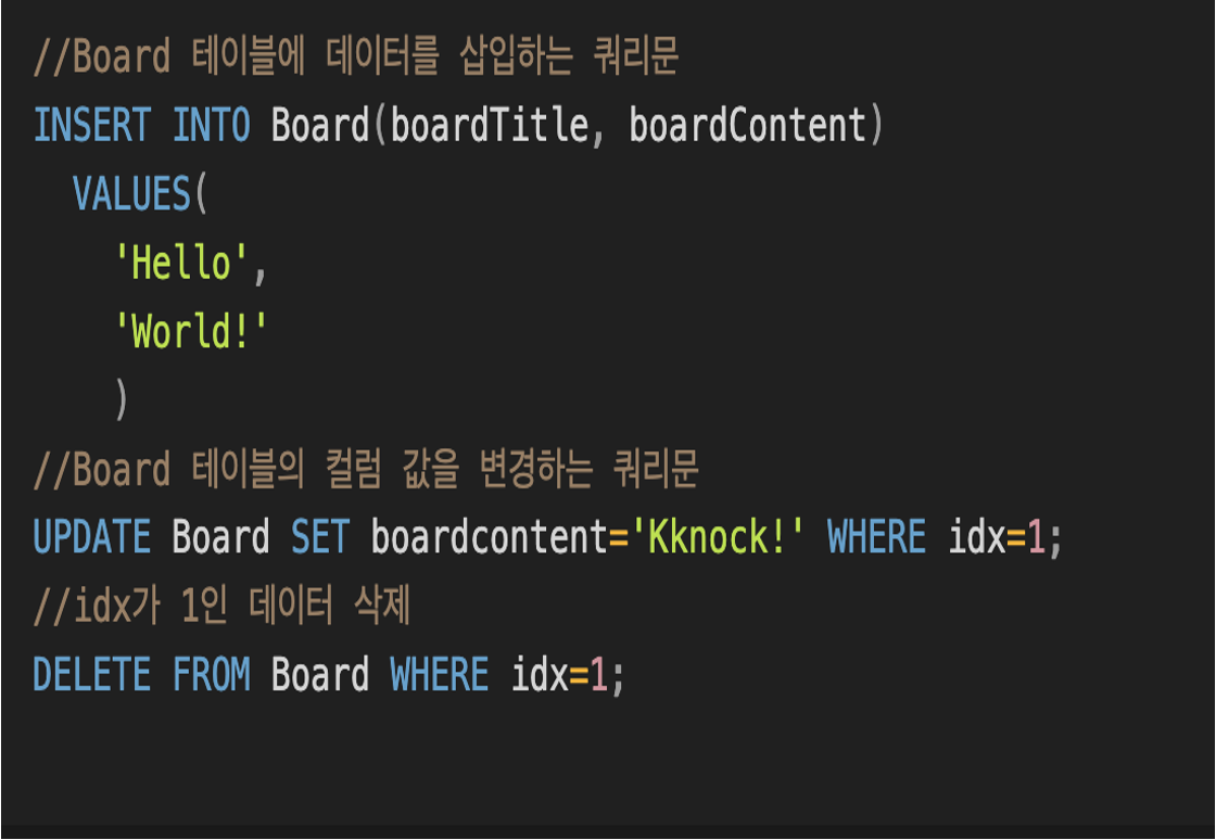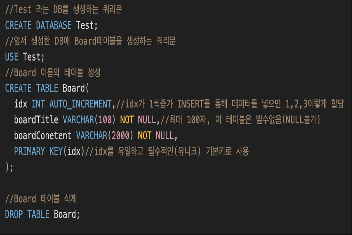 - CREATE : DB 스키마 또는 테이블 생성