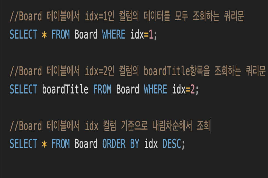 - SELECT : 테이블 내의 데이터를 조회